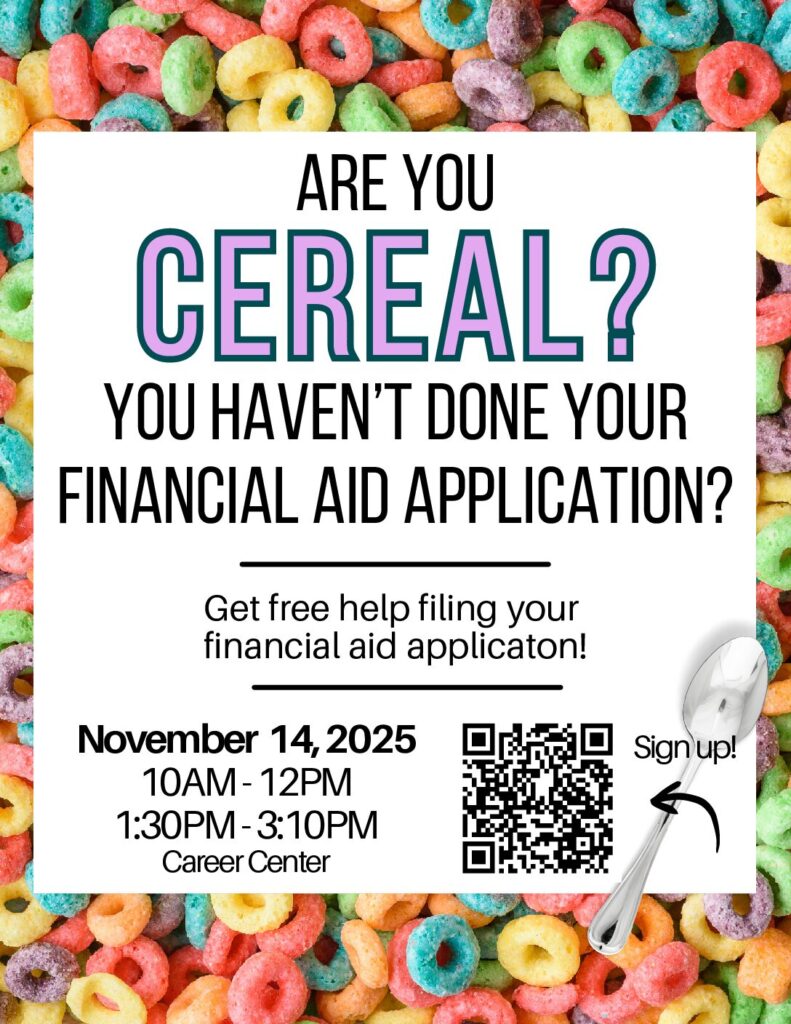Head to the Career Center on November 14 at 10am and 1:30pm for the Hudson’s Bay Financial Aid Application Workshop! Whether you’re filling out the FAFSA or WASFA, we’ll help you get started, answer your questions, and make sure you don’t miss out on free money for college.